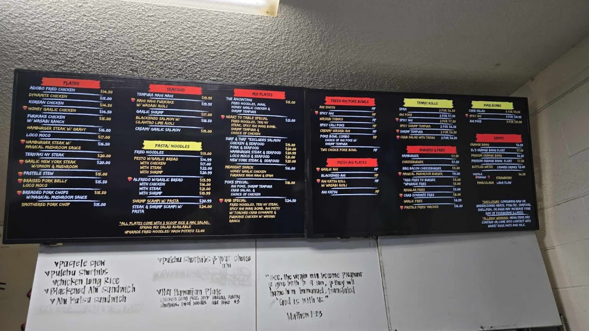 Anything local owned and open past 8pm post covid deserves support and a visit imo. Plus its in my hood, located in the same building as Ks Bento ya in Waipahu Seen some of the ig posts and figure head down to try this place and wasnt dissapointed. Parking kinda sucks but you can double park or park across the street by Honolulu Kitchen but its sketchy and dark so just double park Cards accepted, dont think they take cash fyi. Friendly service, ordered the $20 Heart to Table Special that was massive with steak, tempura shrimp, fried chicken, fried noodles and an ahi inari bombYou also get to choose the type of chicken and its made to order. Chicken crispy, the ahi inari bomb was a unique touch to the plate. Crowds were steady as i waited for my food so it must be good5 stars