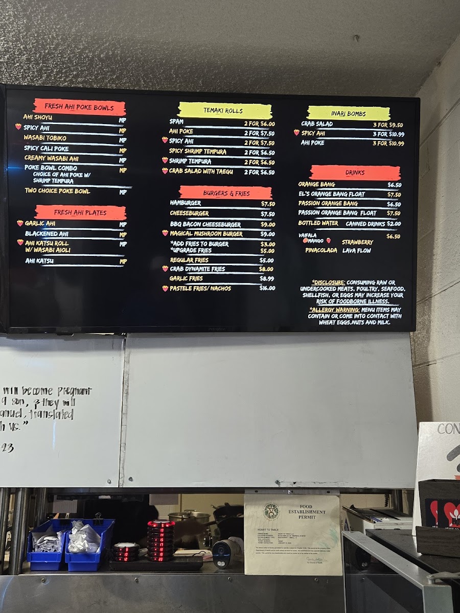 Heart To Table Menu
